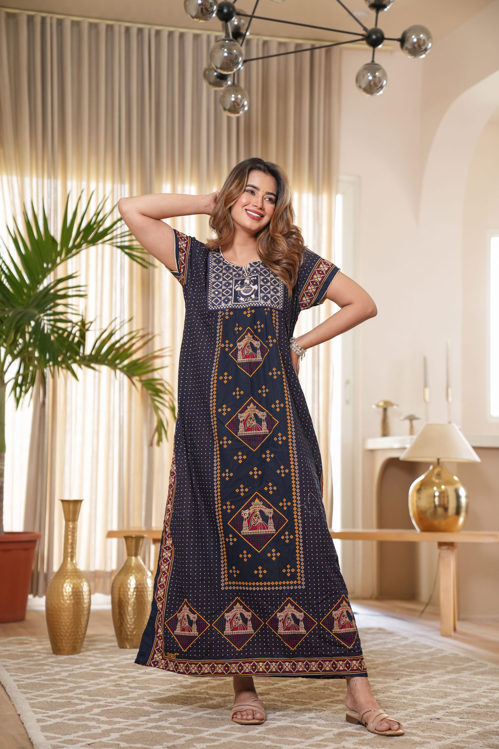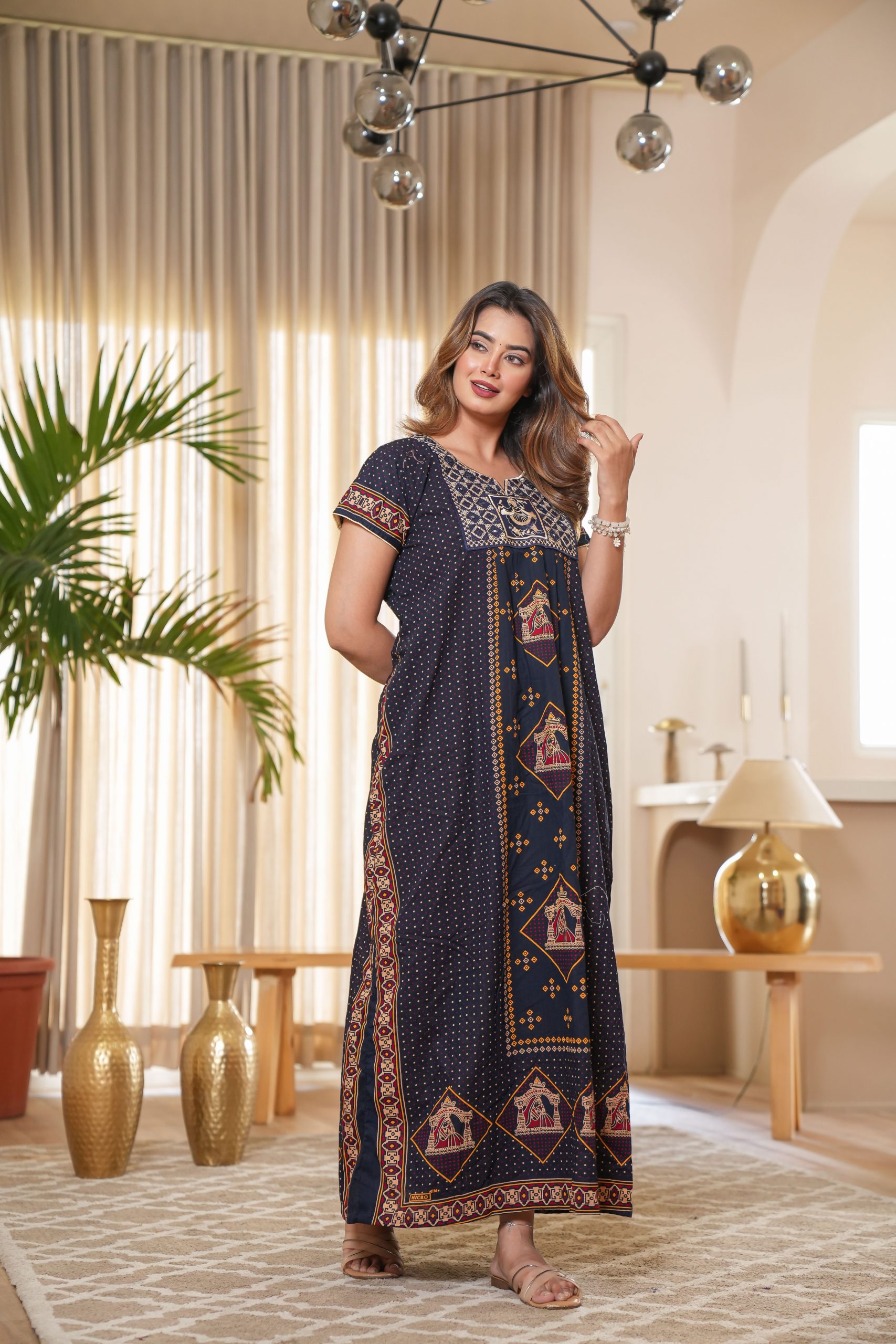 G4Girl Cotton Embroidery Nighty for Womens/Girls (Z14) (Z14-GUJRI)