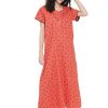 G4Girl Cotton Nighty Gown for Women’s (C-G1014-ORANGE)