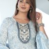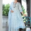 - Fabric: The Jaipuri Pure Cotton Anarkali Frock Kurti and Pant are crafted from soft and smooth pure cotton fabric, adorned with beautiful printed patterns that add a subtle shine. The Malmal Dupatta features intricate printed designs, enhancing its fancy appearance. This elegant ensemble is perfect for special occasions.