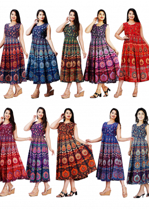 Cotton Jaipuri Maxi Frock Kurtis ( Free Size – Fit For All S, M, L, XL, XXL) (MIDI-MIXUP)